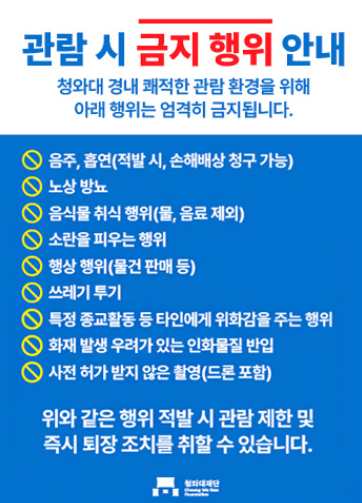 - 지하철 이용 시: 경복궁역 4번 출구 → 청와대 방향 직진